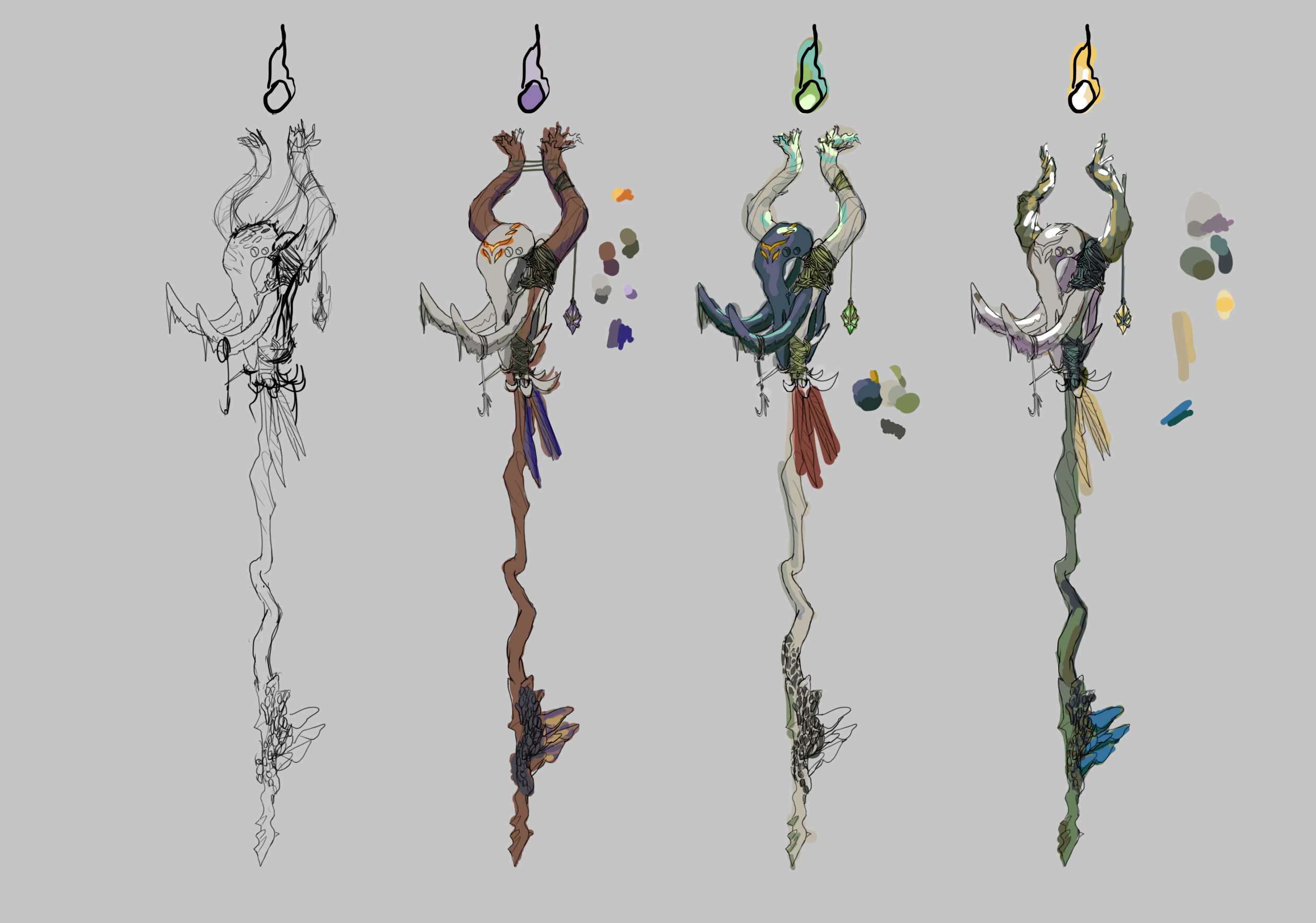 Prop Design Sketches and final rendering assets for props for a young adult animation project about necromancy, power, and birds. Tarot card designs for Demonhuntr, an LGBTQ-inclusive horror comedy. Created by Tim O’Leary